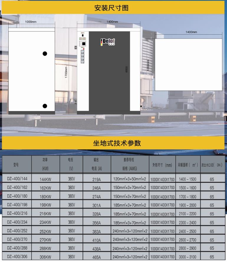 | 坐地式 | DZ-400-144 | 400 | 144 | 380V | 108000 | 1000*1400*1700 |